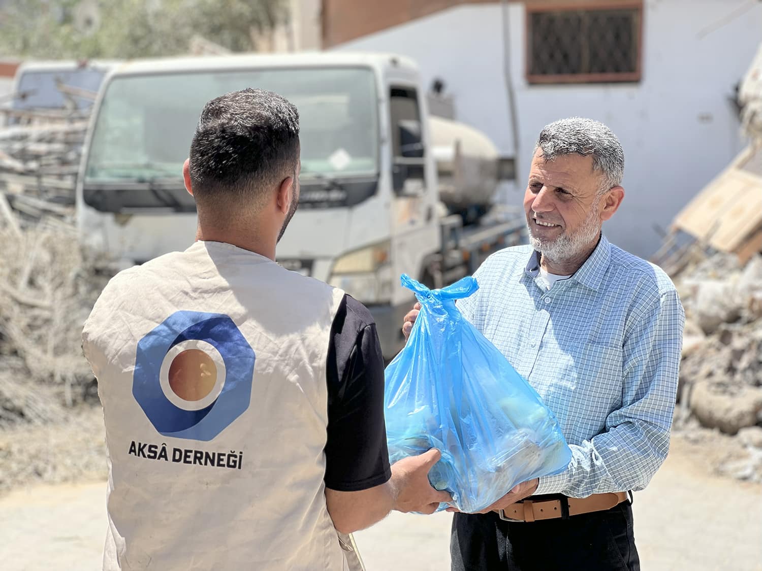 Vegetable Parcel Distribution in Deir al-Balah aksa Association distributes fresh vegetable parcels in Deir al-Balah to support needy families, contributing to improved nutrition and strengthening food security within the local community. Related Gallery Captured Activities See More Picture Dair Albalah Clothing Distribution for Children in Deir al-Balah Take A Look Dair Albalah Medical Support in Deir al-Balah Take A Look